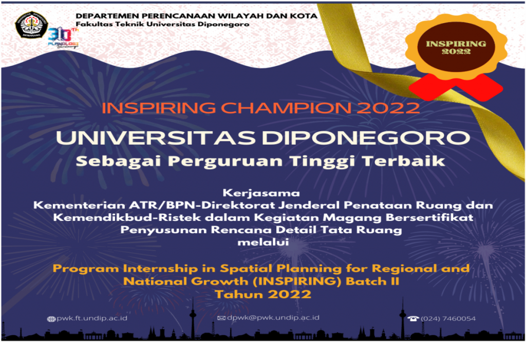 Friday, April 22, 2022, the Department of Urban and Regional Planning (DURP) received a visit from the Directorate of Regional Development – Ministry of National Development Planning (PPN/Bappenas) for a Discussion on Completion of Academic Papers on Regulatory Frameworks in the Urban Sector with lecturer representatives from four groups of expertise in DURP – Undip, […]