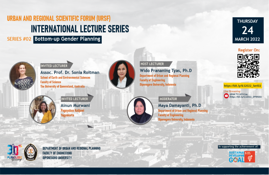On Thursday, March 24, 2022, the second series of International Lecture Series 2022 activities with the theme Bottom-up Gender Planning was held online via Zoom and broadcast via Youtube. The theme of this activity is related to Sustainable Development Goal 5 (Gender Equality) and Sustainable Development Goal 11 (Sustainable Cities and Communities). Assoc. Prof. Dr. […]
