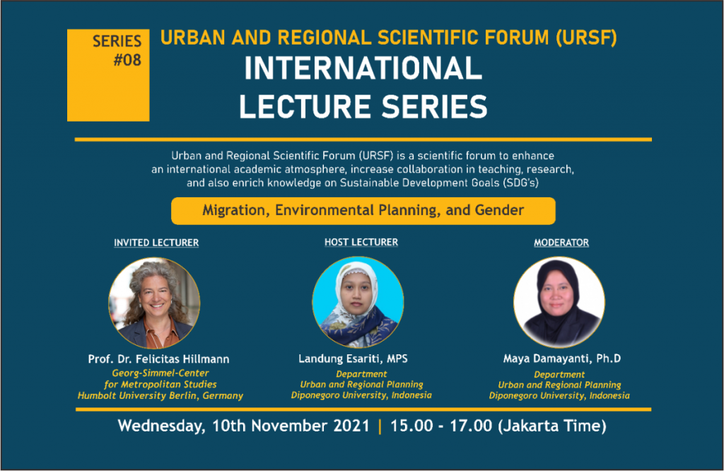 Pada hari Rabu, 10 November 2021 telah berlangsung kegiatan International Lecture Series 2021 dengan tema Migration, Environmental Planning, and Gender. Tema kegiatan seri keenam ini terkait dengan Tujuan Pembangunan Berkelanjutan 11 tentang Kota dan Komunitas Berkelanjutan, dan Tujuan Pembangunan Berkelanjutan 5 tentang Kesetaraan Gender. Jumlah peserta dalam International Lecture Series 2021 kali ini adalah 168 […]
