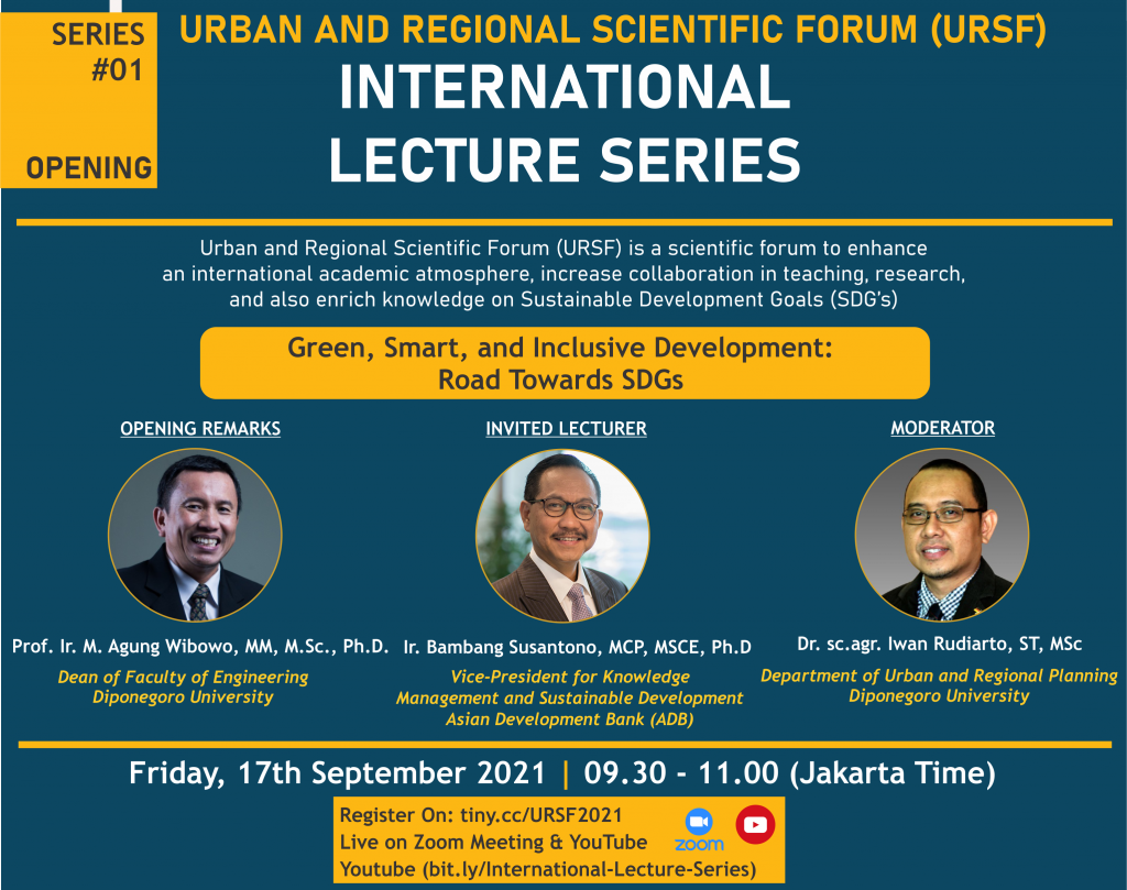Pada hari Jumat, 17 September 2021 telah dilaksanakan kegiatan seri pertama yang sekaligus sebagai Opening International Lecture Series 2021. Tema kegiatan seri pertama ialah Green, Smart, and Inclusive Development: Road Towards SDGs, yang secara umum dapat terkait dengan Tujuan Pembangunan Berkelanjutan 9 (Industri, Inovasi dan Infrastruktur), dan Tujuan Pembangunan Berkelanjutan 11 (Kota dan Komunitas Berkelanjutan). […]