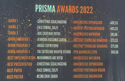 The final presentation of LKTI PRISMA 2022 was attended by 15 Delegation Teams from various universities in Indonesia. The event was opened with a presentation of the finalists, followed by a national seminar and gala dinner, and closed with a Field Trip. The Diponegoro University team won 1st place in the 2022 PRISMA LKTIN and the Best Presentation predicate which was announced on 28 May 2022.