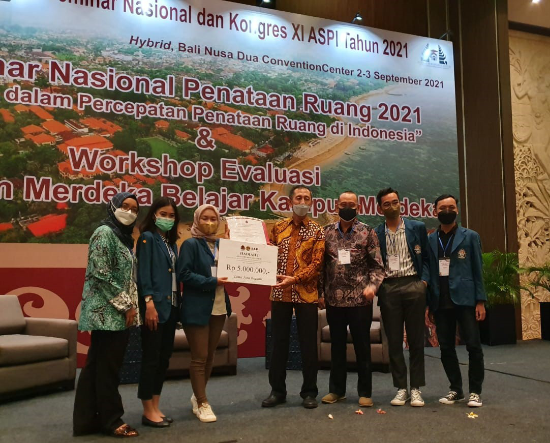 Tim yang terdiri dari 21 mahasiswa Prodi S1 Perencanaan Wilayah dan Kota Angkatan 2017 yakni Meuvia Callista Aldi , Muhammad Safrul , Gideon Wily C., Refaro Teguh Iman, Abhi Kurniawan, Affan Safana, Agung Dwi, Analia Astuti, Avina Nilam A, Choirun Nisa, Crismon Alfajri, Delinda Elyan J, Dwirantika M. , Feby Triana A., Hafizh Alfunni’am, Priscilla Jocelyne N., Ruby Melinia H., Shafa Kautsara A., Tarisadi F., Wewin Wira C. W., dan Frida Khairunnisa Kundani, dibimbing oleh Dosen PWK Bapak Dr. Jawoto Sih Setyono, ST, MDP dan ibu Mada Sophianingrum, ST, MT, MSc, dan mampu mengalahkan 3 finalis lainnya dari ITK, UNTAR, dan UGM.