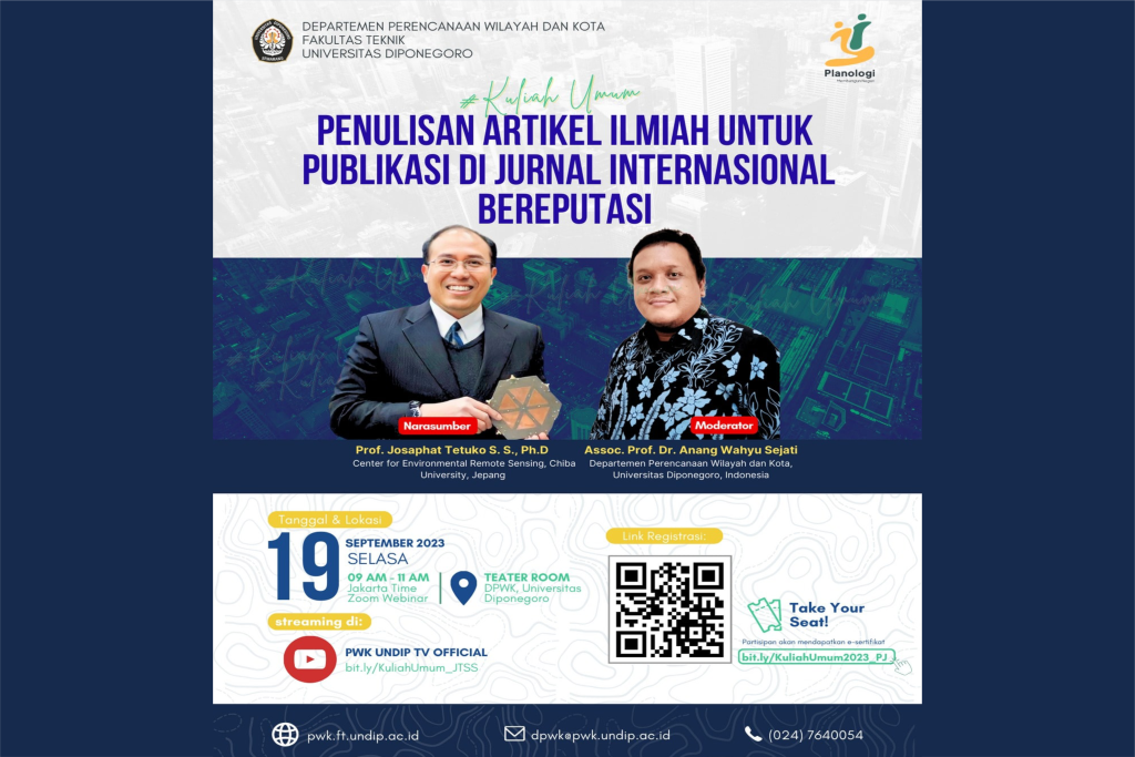 Jurnal pembangunan Wilayah dan Kota (JPWK) yang merupakan jurnal terakreditasi Sinta 2 menyelenggarakan kegiatan Klinik Manuskrip Batch 2 pada Tanggal 8 September 2023. JPWK merupakan salah satu jurnal terakreditasi nasional bersama dengan 5 (lima) jurnal yang lain (Journal Geoplanning, The Indonesian Journal of Planning and Development, Jurnal Pengembangan Kota, Jurnal Wilayah dan Lingkungan Jurnal, dan […]