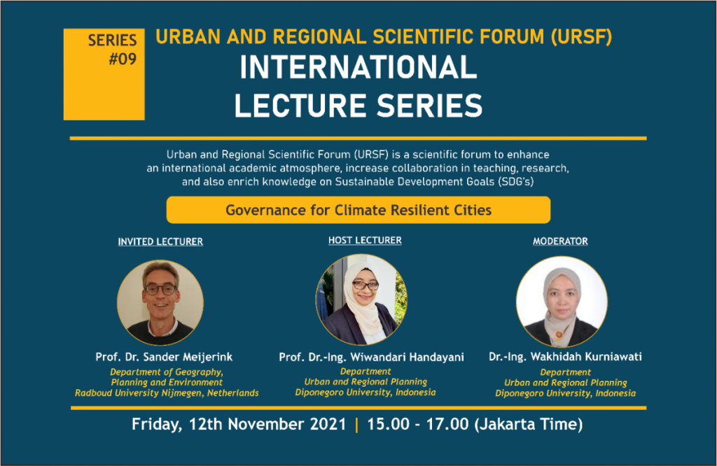 Link Yotutube 09 GOVERNANCE FOR CLIMATE RESILIENT CITIES Kegiatan International Lecture Series 2021 seri terakhir dilaksanakan pada hari Jumat, 12 November 2021 dengan tema Governance for Climate Resilient Cities. Tema kegiatan kali ini terkait dengan Tujuan Pembangunan Berkelanjutan 11 tentang Kota dan Komunitas Berkelanjutan, dan Tujuan Pembangunan Berkelanjutan 16 tentang Perdamaian, Keadilan dan Kelembagaan […]
