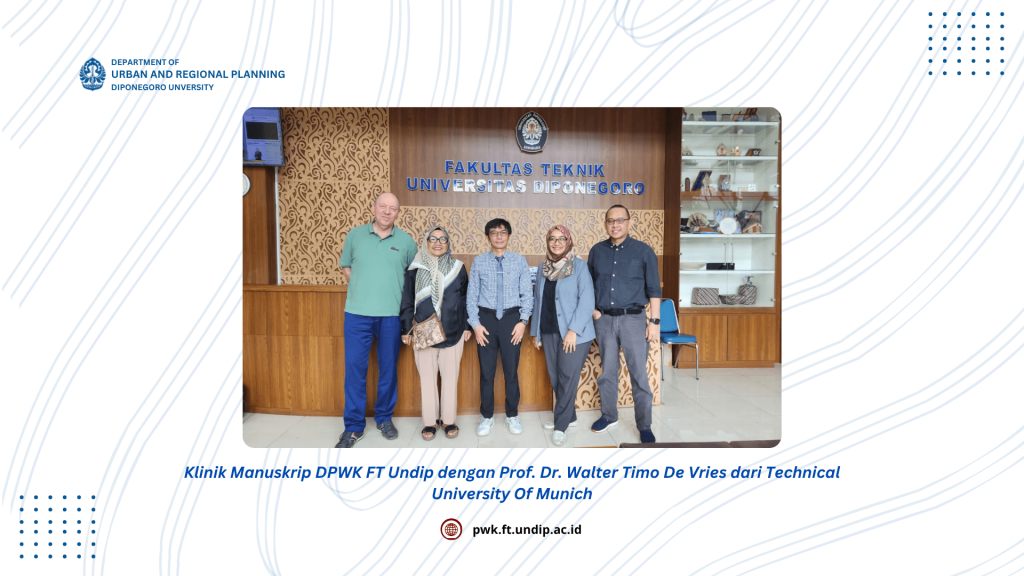 Departemen Perencanaan Wilayah dan Kota (DPWK) Fakultas Teknik Universitas Diponegoro mengadakan kegiatan Klinik Manuskrip sebagai forum konsultasi penulisan ilmiah. Kegiatan ini dipandu oleh Prof. Dr. Walter Timo de Vries, Director of the Master and PhD Programs in Land Management and Geospatial Science, Technical University of Munich (TUM). Kehadiran Prof. Walter memberikan kesempatan berharga bagi peserta […]