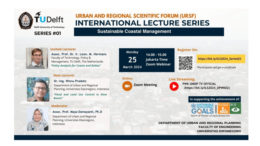 Pada hari Senin, 25 Maret 2024 telah berlangsung International Lecture Series #02 diselenggarakan secara sinkronus melalui zoom meeting dan asinkronus melalui YouTube. Tema diskusi webinar tersebut “sustainable Coastal Management”, berkaitan erat dengan tujuan pembangunan berkelanjutan 11 (Kota dan Permukiman yang Berkelanjutan) dan tujuan pembangunan berkelanjutan 13 (penanganan perubahan iklim). Pada kesempatan tersebut, Prof. Dr.-Ing. Wiwandari […]