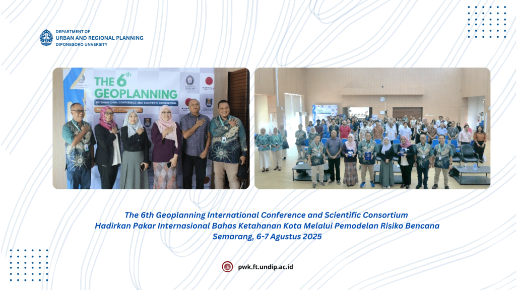 Laboratorium Geomatika dan Perencanaan, Departemen Perencanaan Wilayah dan Kota, Fakultas Teknik, Universitas Diponegoro telah berhasil menyelenggarakan kegiatan The 6th Geoplanning International Conference and Scientific Consortium pada Rabu – Kamis, 6 – 7 Agustus 2025. Kegiatan ini merupakan agenda 2 tahunan Laboratorium Geomatika dan Perencanaan. Pada tahun ini, The 6th Geoplanning diketuai oleh Prof. Dr.rer.nat. Imam […]