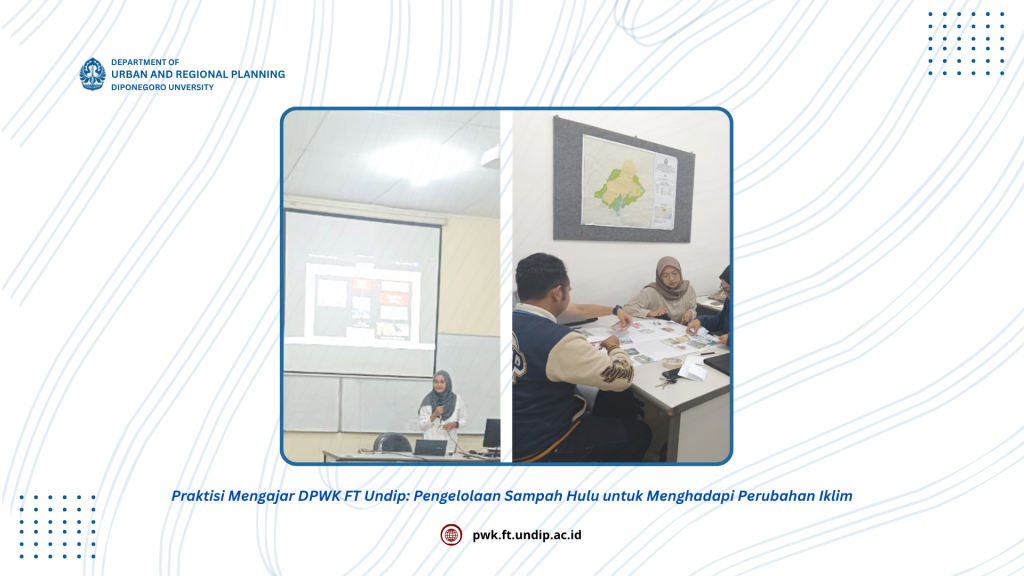 Departemen Perencanaan Wilayah dan Kota (DPWK) Fakultas Teknik Universitas Diponegoro kembali mengadakan kegiatan Praktisi Mengajar sebagai sarana memperkaya pengetahuan mahasiswa dengan perspektif akademis sekaligus pengalaman lapangan. Pada Rabu, 28 Mei 2025, kegiatan ini menghadirkan Mega Anggraeni, ST, M.Si, yang saat ini merupakan Manager di Yayasan Inisiatif Kota untuk Perubahan Iklim (IKUPI). Dalam perkuliahan tersebut, Beliau […]