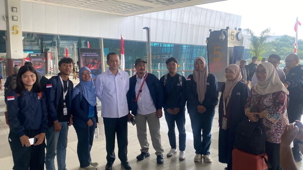 Salah satu tim Ekspedisi Patriot yang diketuai oleh dosen DPWK FT Undip, Dr. Artiningsih, S.T., M.Si. dalam prosesi pelepasan bersama Menteri Transmigrasi