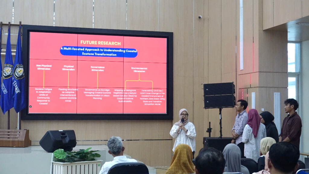 Dalam kesempatan ini, peserta SMUS Multidisciplinary Learning Series yang terbagi dalam 3 kelompok memaparkan gagasan penelitian yang menyoroti konsep ecotone sebagai zona transisi ekologis yang dinamis dan rentan terhadap masalah perkotaan kompleks (wicked urban problems), seperti penurunan muka tanah, abrasi, dan kenaikan muka air laut. SMUS Kick-Off Event ini dihadiri oleh ratusan peserta dari institusi pemerintah, lembaga penelitian, NGO, dan mahasiswa PWK Undip, Universitas Semarang (USM), dan Universitas Islam Sultan Agung (Unissula). Prof. Dr. Walter Timo de Vries dari Technical University of Munich, Annisa Fitria, M.A. dari Kedutaan Besar Republik Federal Jerman, dan Pramudita Mahyastuti, M.Sc dan Angie dari GIZ (Deutsche Gesellschaft für Internationale Zusammenarbeit GmbH) juga turut diundang sebagai penanggap. Selain sesi paparan dan diskusi, acara ini juga menyediakan ruang dialog terbuka antara mahasiswa, akademisi, praktisi, dan masyarakat terkait pentingnya ecotone secara strategis dalam menjawab tantangan keberlanjutan perkotaan.