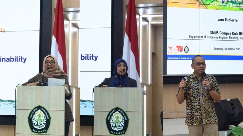 Departemen Perencanaan Wilayah dan Kota (DPWK) Fakultas Teknik Undip, sebagai core partner dalam jejaring Global Center of Spatial Methods for Urban Sustainability (SMUS) yang dikoordinasikan oleh oleh Technische Universität (TU) Berlin dan didukung oleh DAAD Exceed Pemerintah Jerman, menyelenggarakan SMUS Kick-Off Event pada Rabu, 8 Oktober 2025 di Engineering Hall, Dekanat Fakultas Teknik. Kegiatan ini menjadi puncak rangkaian SMUS Multidisciplinary Learning Series bertema “Blurring Boundaries”: The Role of Ec(h)otones in Shaping Urban Sustainability, yang menampilkan hasil kerja 14 peserta terkait penerapan konsep ecotone dalam kajian keberlanjutan perkotaan yang telah dikembangkan melalui site visit di Sayung, Demak dan workshop yang menjadi bagian dari rangkaian kegiatan ini.
