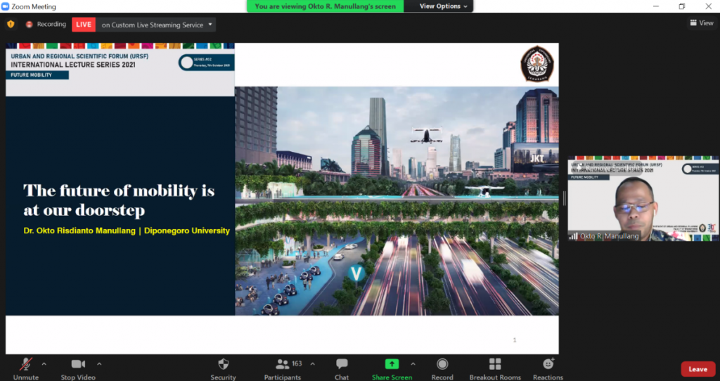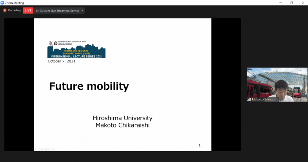 Pada hari Kamis, 7 Oktober 2021 telah dilaksanakan kegiatan International Lecture Series 2021 seri kedua dengan tema Future Mobility secara daring via Zoom dan disiarkan melalui kanal Youtube. Tema kegiatan kali ini secara umum dapat terkait dengan Tujuan Pembangunan Berkelanjutan 9 (Industri, Inovasi dan Infrastruktur), dan Tujuan Pembangunan Berkelanjutan 11 (Kota dan Komunitas Berkelanjutan). Pada kesempatan tersebut, turut mengundang Assoc. Prof. Dr. Makoto Chikaraishi sebagai pakar di bidang transportasi dari Hiroshima University, Jepang. Pada sesi pertama, Assoc. Prof. Dr. Makoto Chikaraishi memaparkan tentang “Future Mobility in Japan”. Setelah itu, pada sesi kedua dilanjutkan paparan oleh Dr. Okto Risdianto Manulang dari Departemen Perencanaan Wilayah dan Kota yang berjudul “The Future Mobility is at Our Doorstep”. Paparan dari kedua pakar tersebut dapat meningkatkan pemahaman dan pengetahuan peserta mengenai konsep future mobility dari perspektif kondisi dua negara, yaitu Jepang dan Indonesia. Kegiatan International Lecture Series 2021 Series #02 yang dimoderatori oleh Dr. Yudi Basuki diikuti oleh total 177 peserta dari civitas akademik Fakultas Teknik berjalan dengan lancar hingga akhir acara.